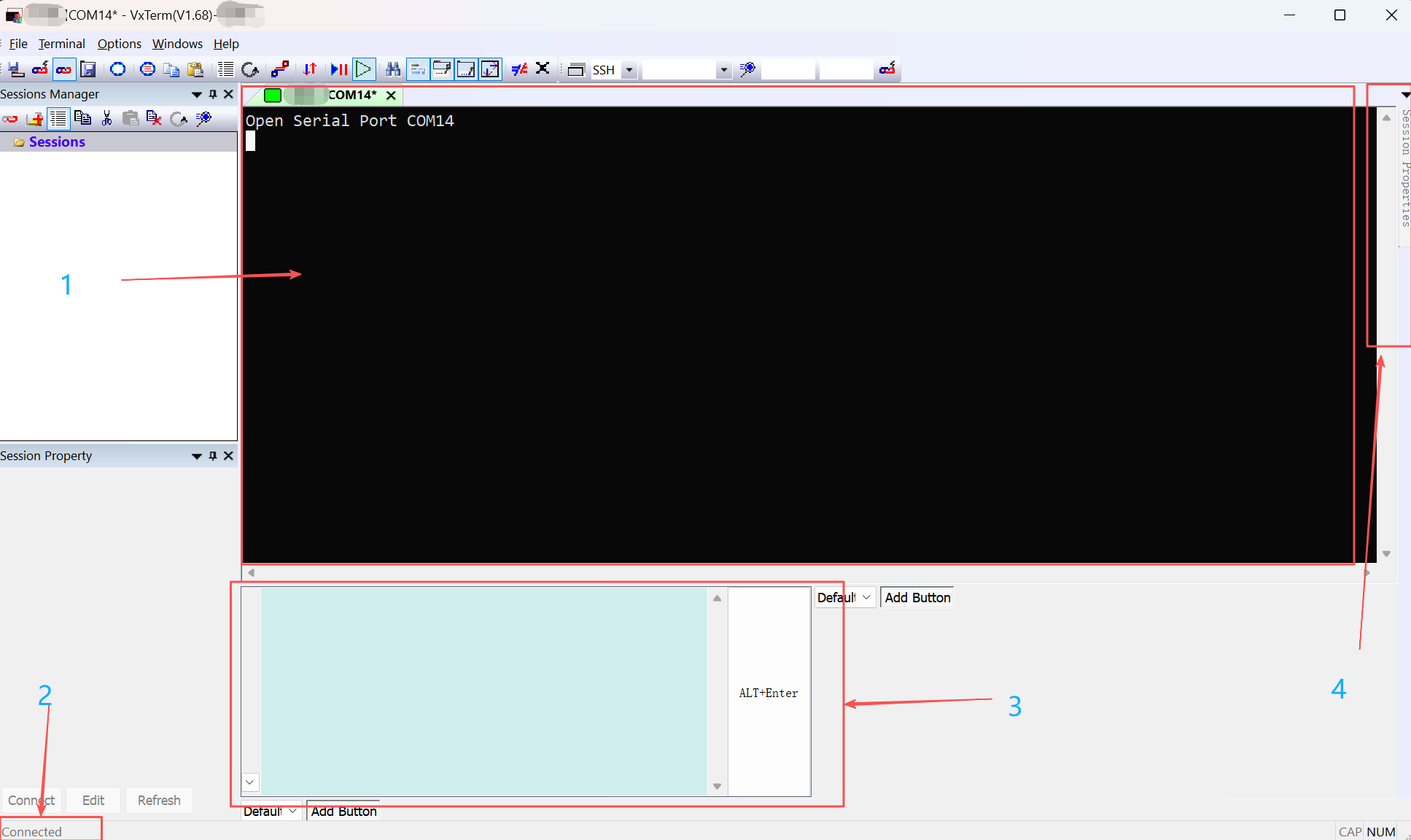 VxTerm is a serial and network terminal that works well with OP-BTS over USB serial or Bluetooth virtual COM for interactive use and debugging. Below are the main steps and notes when using it with OPBTPython.